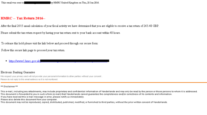 In most of the e-mails we have seen, the subject is “Thu, 28 Jan 2016 ::Tax.Return.No 73563523”