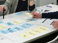 今回は2グループで演習を進めました。各受講生は自分が所属する組織での取り組みを思い浮かべながらグループ内で意見を交わしました。その様子を見ながら、講師はさらに活発な話し合いが行われるように問いかけをしていきます。 グループでの意見交換を通じて、業種は違えどもよく似た課題をお互いに抱えていることを知るとともに、他社の取り組みを耳にすることで新たな方法に気づくことができます。講師からだけでなく他の受講者から学ぶことが多いのも、グループワークの利点です。