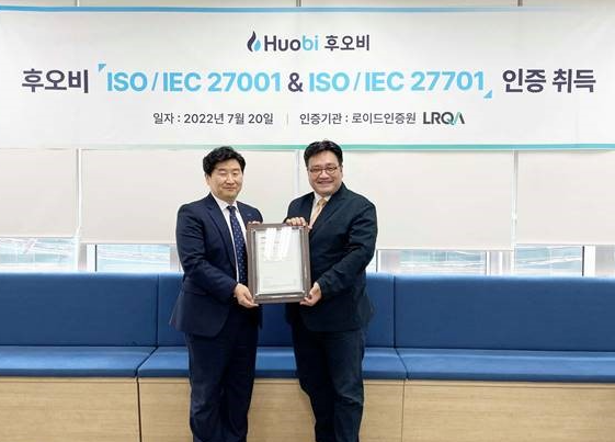 후오비 코리아, ISO 27001 / ISO 27701 인증 동시 획득.
