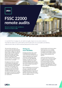 Organizacja FSSC Foundation potwierdziła, że pełne audyty zdalne są obecnie akceptowaną metodą przeprowadzania audytów w celu uzyskania certyfikacji FSSC 22000 v5 w przypadku braku dostępu do obiektów z powodu poważnego zdarzenia.